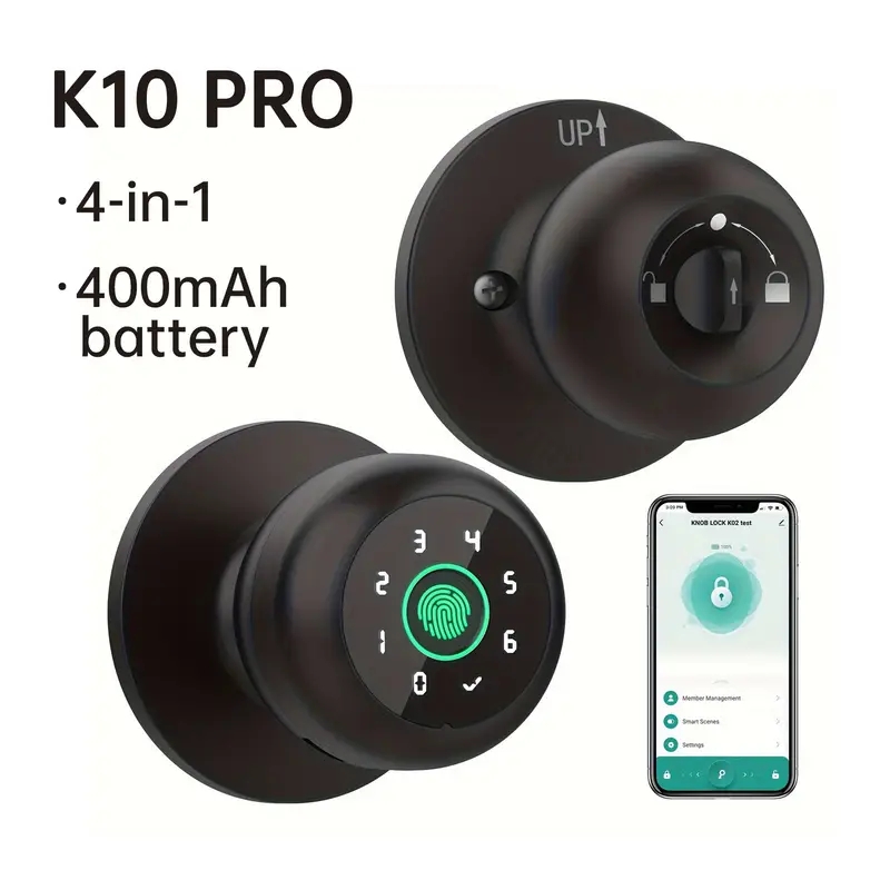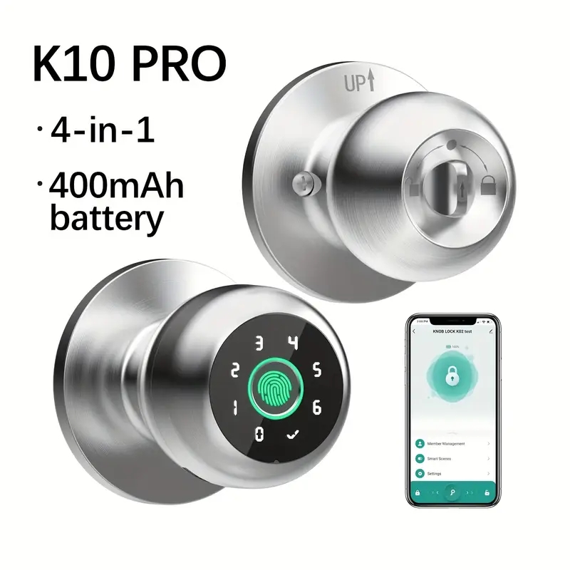4-In-1 smart fingerprint door knob lock with keypad