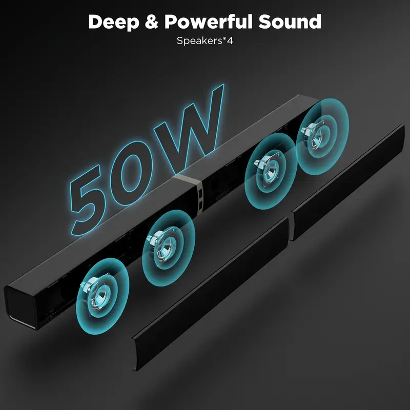 2 IN 1 TV Sound Bar, Sound Bars for Smart TV, 50W Wireless 2.0 Channel Home Audio Sound Bars with ARC/Optical/AUX Connection