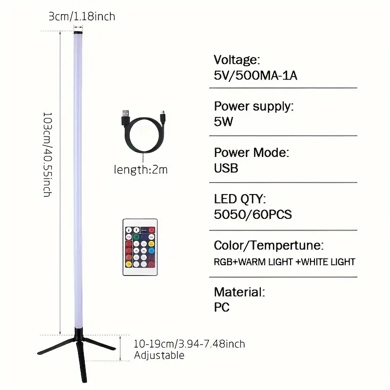RGB Music Atmosphere Lamp with App Control, Wireless, USB Powered, Multi-Color Corner Standing Lamp for Ballroom, Gaming Room, Family Party, Festival, Living Room Decoration - Non-Waterproof, No Battery, with USB Port